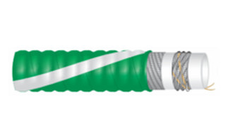 Green, corrugated (wrapped finish), EPDM rubber, resistant to chemical, weathering and ozone.
